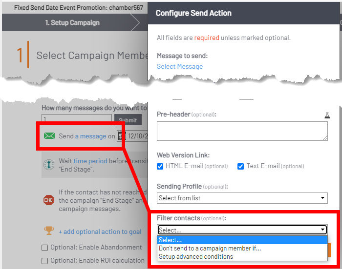 However, you can prevent contacts in the campaign from receiving messages by applying filters to the message(s).