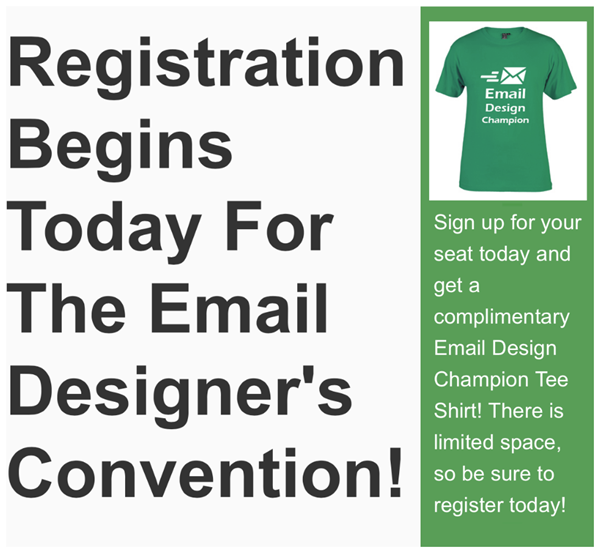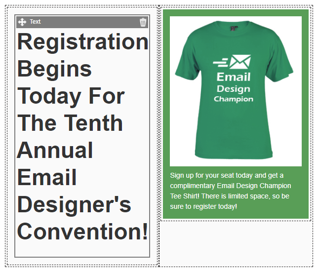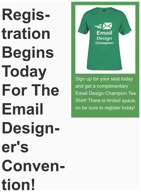 While the message is readable, we lose the 50/50 split between the columns. Longer words, such as “registration” and “convention” push the column width out of proportion.