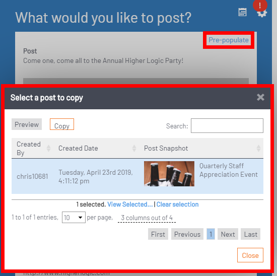 TIP: Want to copy a previous message rather than start from scratch? Click the Pre-populate link toward the top right, select a message in the list, and click Copy.