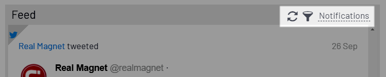 - Click the funnel icon to filter the Feed based on social channel (i.e., only show posts from Facebook or Twitter) and/or the types of messages it will display (i.e., only posts, interactions, or both).