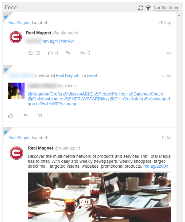 - Notifications shows the most recent interactions on the selected accounts. This is the default view.