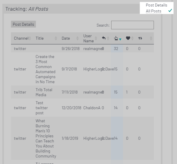 You can switch to a summary report showcasing data across all posts by selecting All Posts from the menu at the top right.
