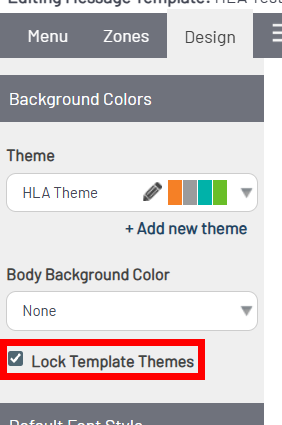 The main thing to understand about themes is you can apply design options for your message and for individual Zones, and the options that are available depend on whether a Zone is or is not selected.