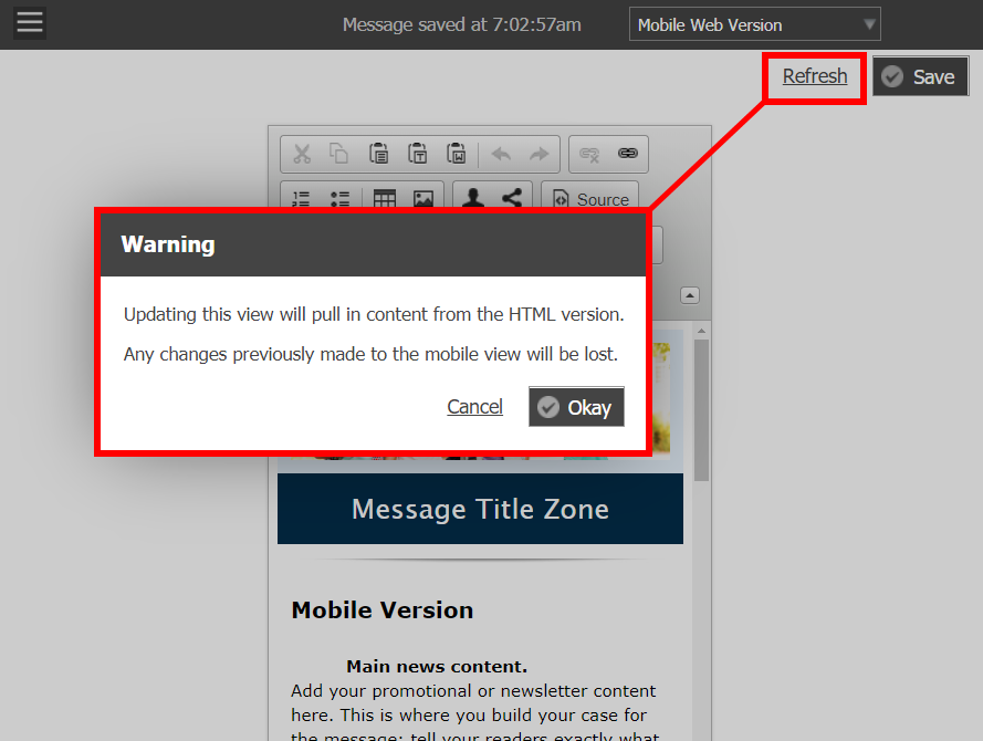 - Explains how to view and edit a mobile-optimized version of messages using the Message Editor’s Mobile Web Version view.