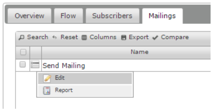 - You can edit a campaign mailing on either the Flow tab or the Mailings tab of the Campaign Report, as described in the sections below.