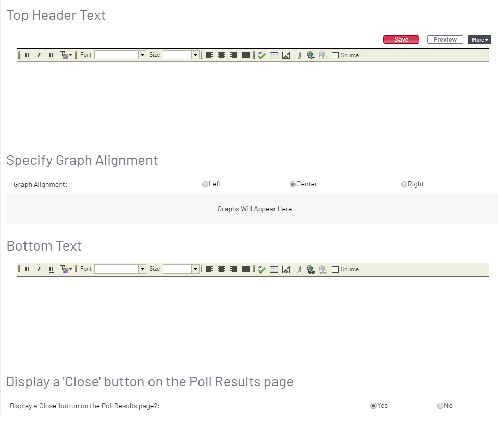 You'll use a standard WYSIWYG editor to customize the page, enabling you to apply the look and feel of the rest of your survey to the Real Time Results page.