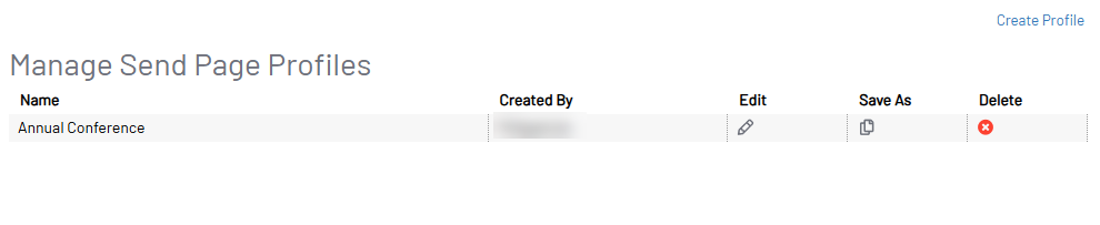 - Click a pencil icon to update the profile's settings. Refer to Create and edit Send Page Profiles, below, to learn more.