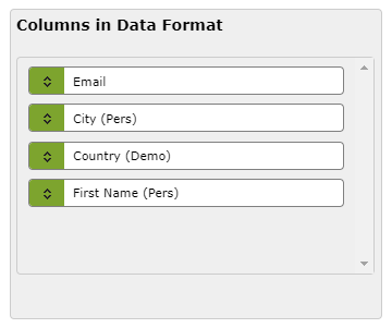 - The Email field under Columns in Data Format is preset by default and is required; it cannot be removed. This is why it's important that email addresses be the first (i.e., left-most) value of the upload file.