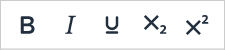 | Click these buttons to format your text for attention and/or effect (bold, italic, underline, subscript [i.e., lower than the adjacent text], and superscript [i.e., higher than the adjacent text]). | |