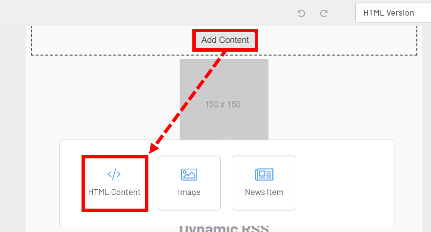 - With the HTML Content type selected, click Open HTML Editor in the HTML Content Properties panel on the left.