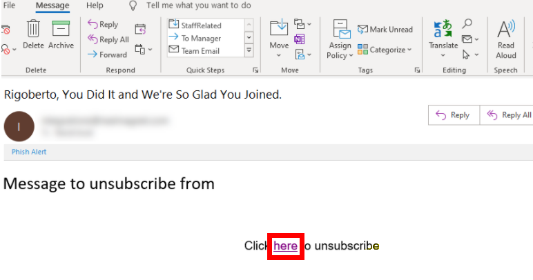 - A Contact receives a message and clicks the unsubscribe link.