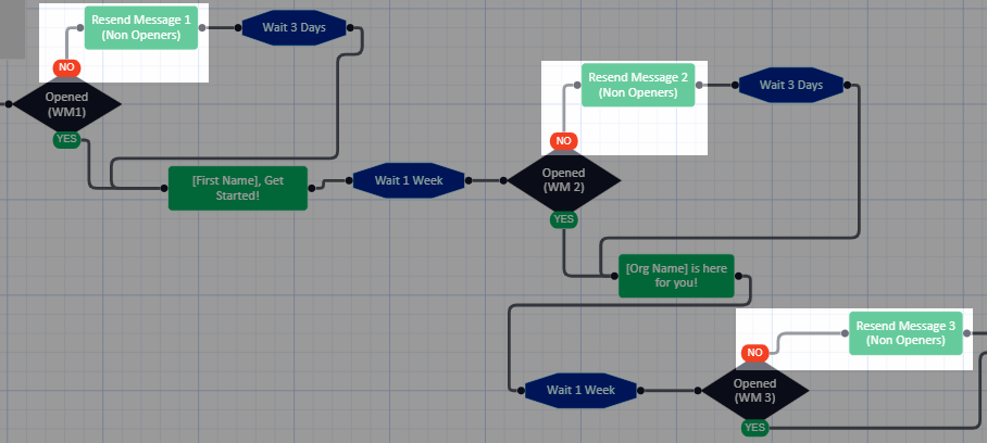 Where appropriate, our Campaign Starter Kits are preconfigured with the recommended and necessary "re-send" Message steps.