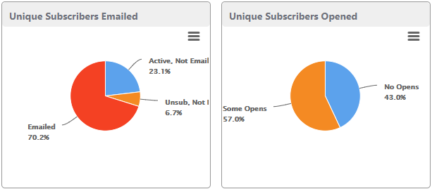 The reports in the Analyze Subscribers group present subscriber-based information that you can review to determine: "open" success; whether email "volume" influences opens and clicks; and which individuals (by email address) were not sent your mailings.