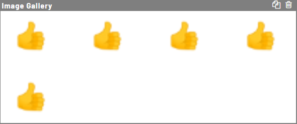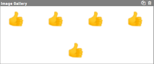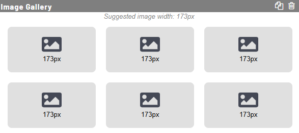- Image Gallery - this layout accommodates a group of images. Several pre-set configurations have recommended image widths and the images are managed in the Image Gallery Properties panel that is described below.