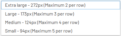 Size of images | Click the dropdown to set the configuration of the images in the gallery.